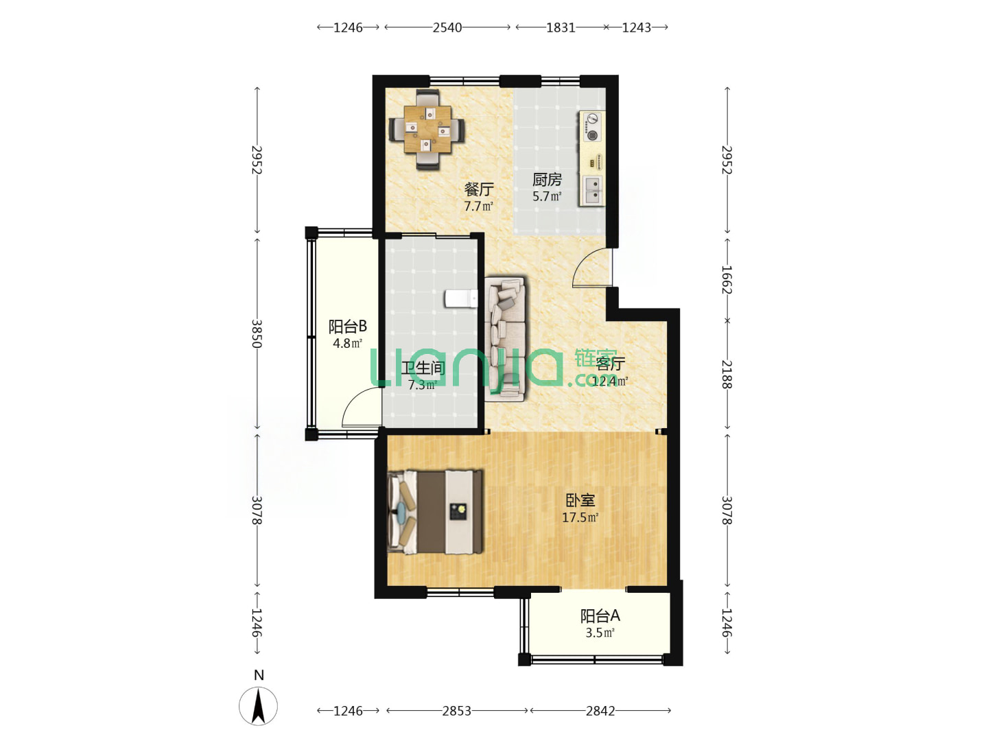 1室1厅1卫 52㎡
